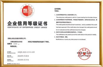AAA级企业信用等级证书